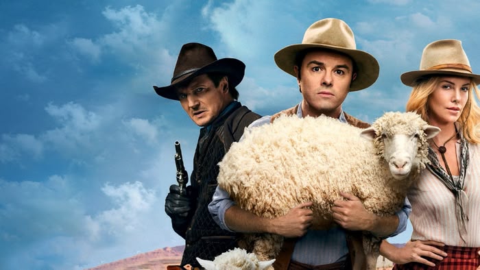 ...In The West: Sheep farmer Seth MacFarlane finds himself drawn to sharp-shooting beauty Charlize Theron in this Western comedy. Strong language/violence/sex/mature themes. (2014)(111mins)