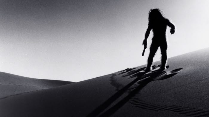 A lone Australopithecine flees across Africa after humans kill his clan. He searches for his own kind across a variety of terrains. (1988)(91 mins)