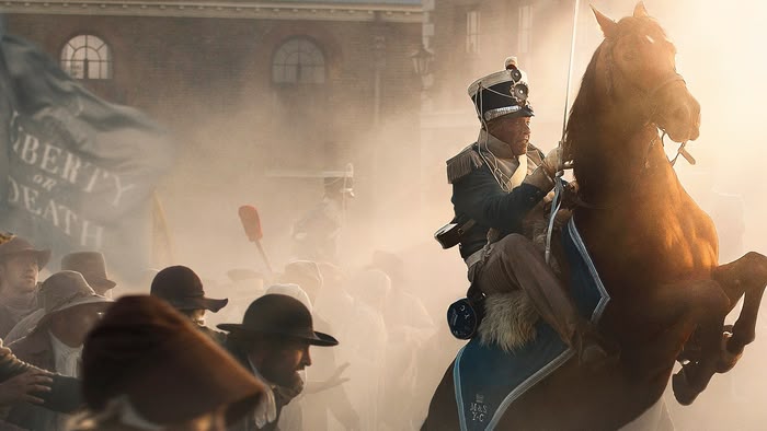 Historical drama recreating the Peterloo Massacre, where British government forces attacked a pro-democracy rally. Mike Leigh directs. Language/violence/flashing images. (2018)(154 mins)
