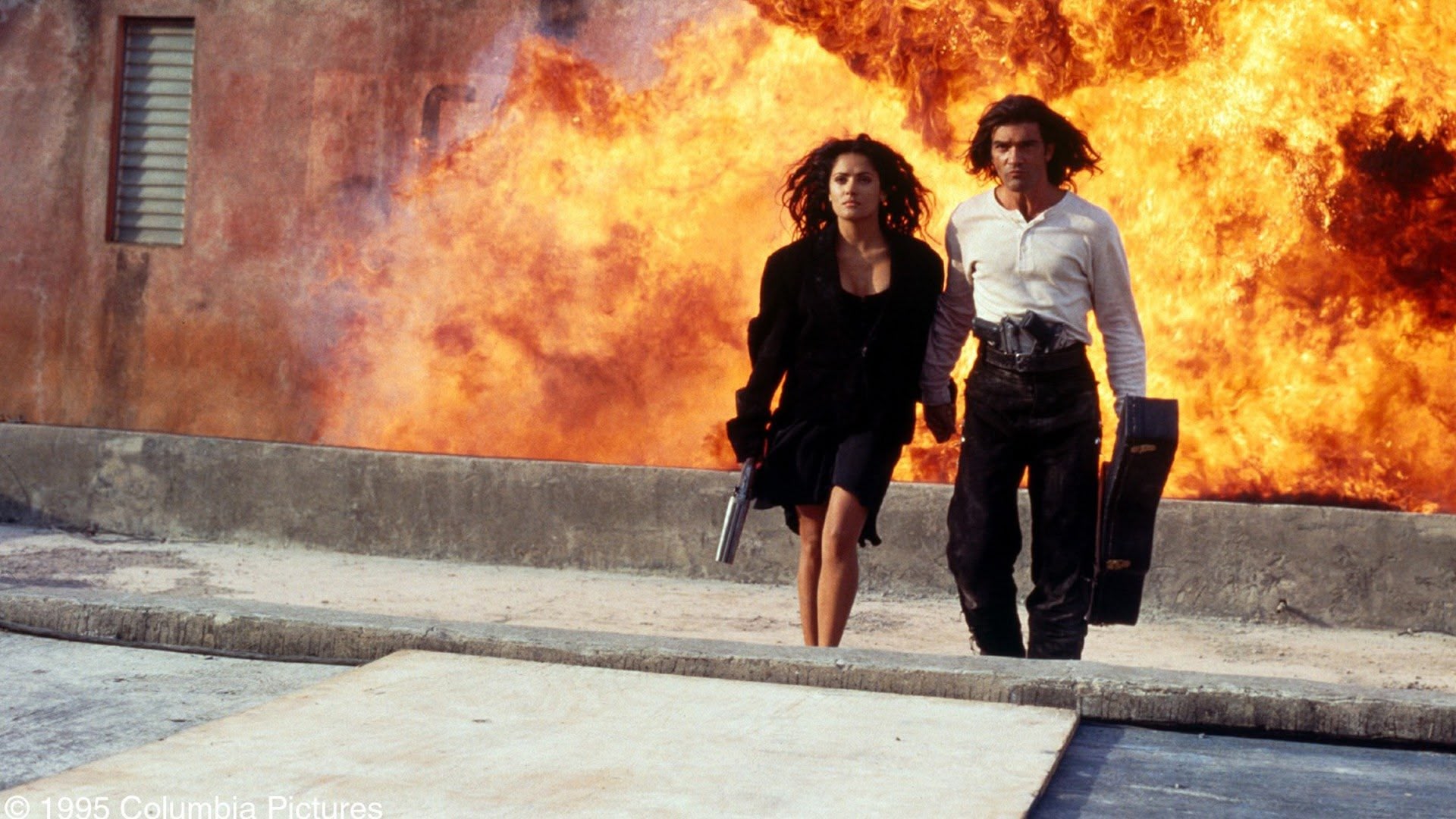 Mariachi Antonio Banderas sets out to take down a Mexican drugs baron. Steamy action starring Salma Hayek and Quentin Tarantino. Strong language/violence. (1995)(101 mins)