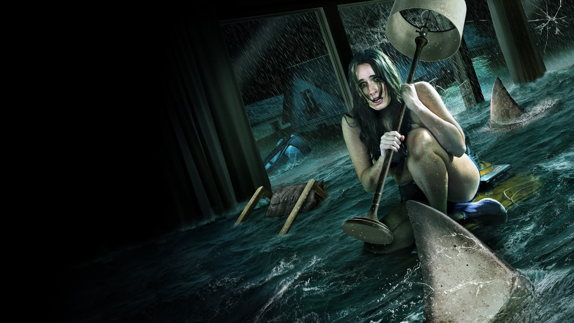 A family, trapped in their storm-flooded vacation rental, try to escape from a hungry shark. Action horror with Joey Lawrence. Violence. (2021)(87 mins)