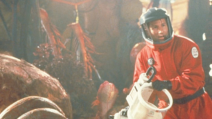 A ragtag group battle an alien organism that arrives on Earth. Sci-fi comedy with David Duchovny and Julianne Moore. Strong language/sex/mature themes/flashing images. (2001)(98 mins)