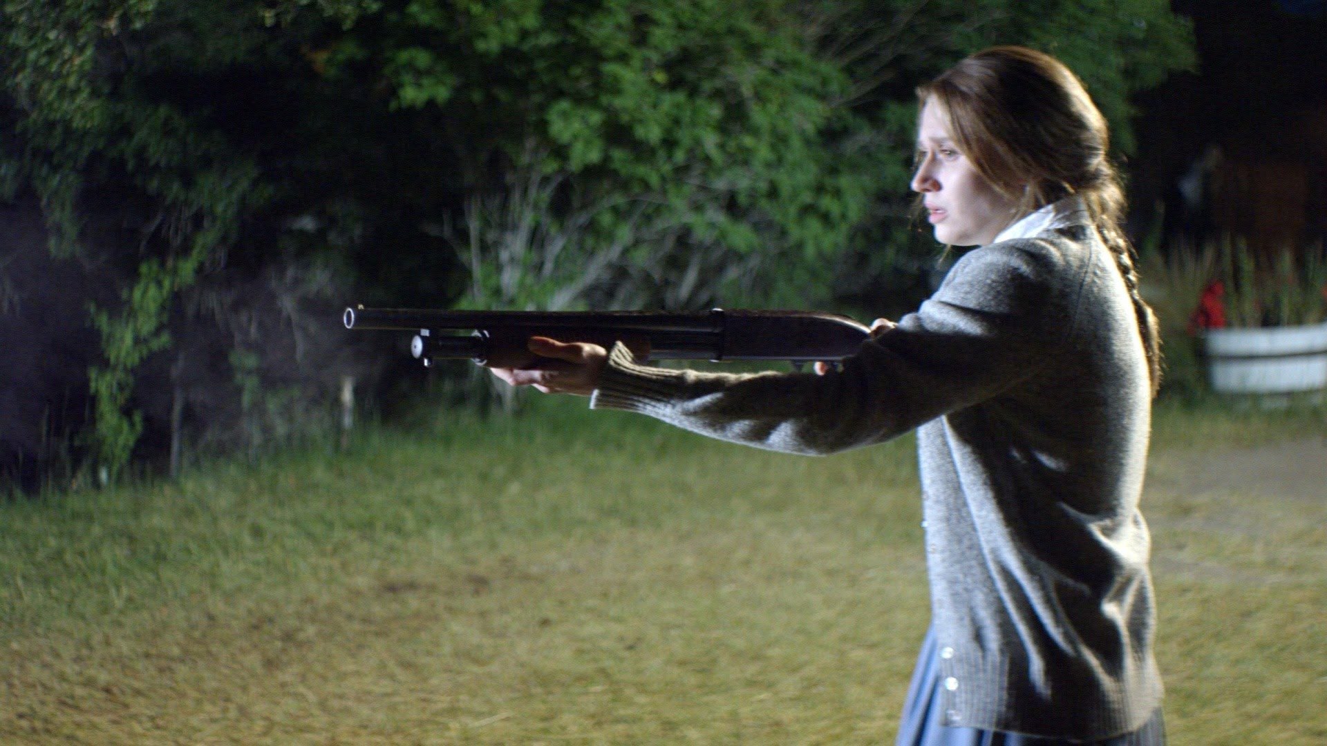 A teenage daughter tries to escape her fanatical father when three strangers break down at their remote compound. Horror-thriller. Strong language/violence/mature themes. (2020)(94 mins)