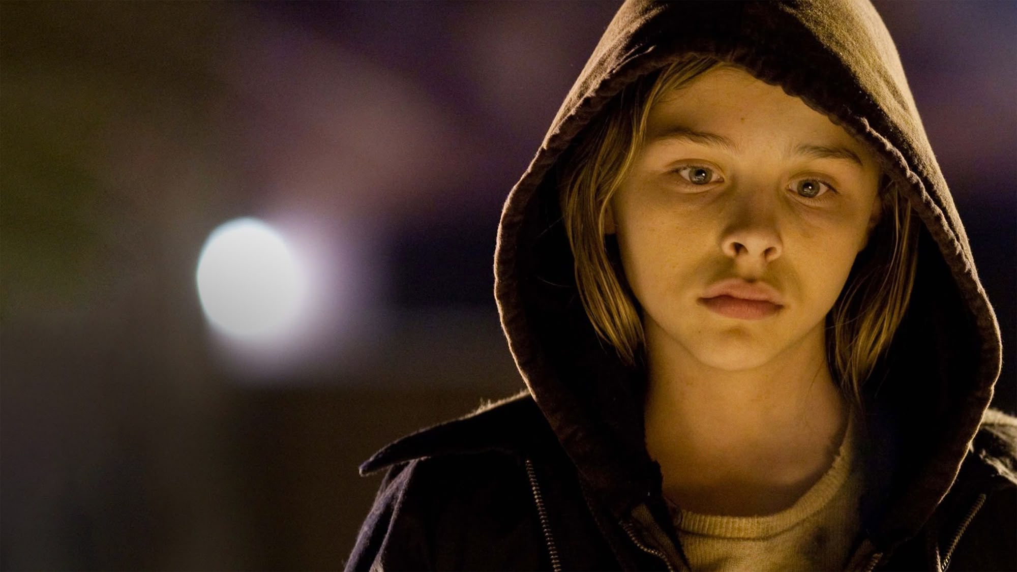 Lonely youngster Kodi Smit-McPhee befriends new neighbour Chloe Moretz, unaware that she's secretly a vampire. Contains strong language & violence. (2010)(112 mins)