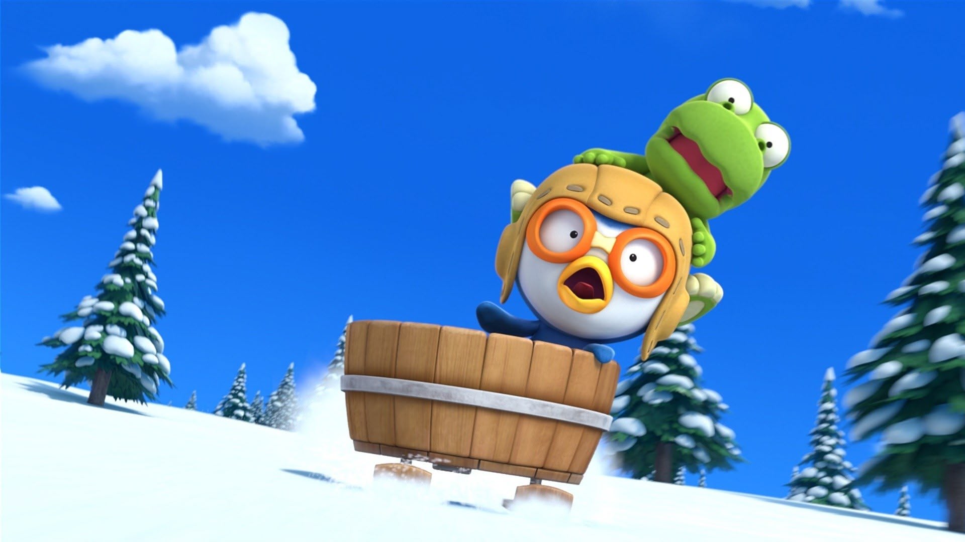 ...Adventure: Pororo the penguin inadvertently causes a cargo plane to crash and the turtles aboard teach him and his friends how to race sleds. Animation. Flashing images. (2013)(75 mins)