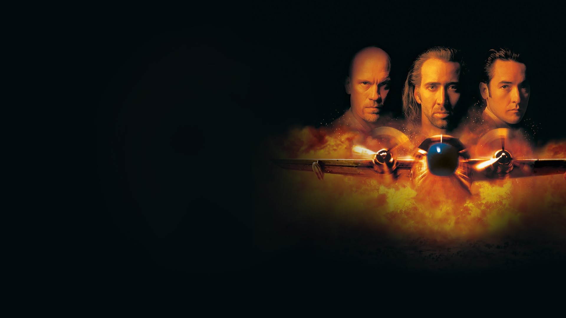 Paroled US Army ranger Nicolas Cage becomes trapped on a hijacked prison plane. OTT action with Steve Buscemi and John Malkovich among the cons. (1997)(111 mins)