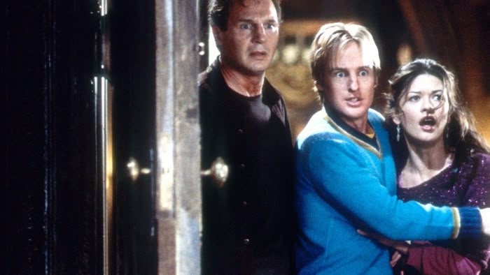 Liam Neeson stars as a scientist studying fear who hires a group of insomniacs to stay in a haunted house. Supernatural horror with Catherine Zeta-Jones. Violent scenes. (1999)(109 mins)