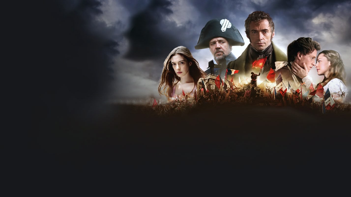 Epic musical with Hugh Jackman as a French convict who skips parole and attempts to rebuild his life. With an Oscar-winning Anne Hathaway. Contains violence/mature themes. (2012)(152 mins)