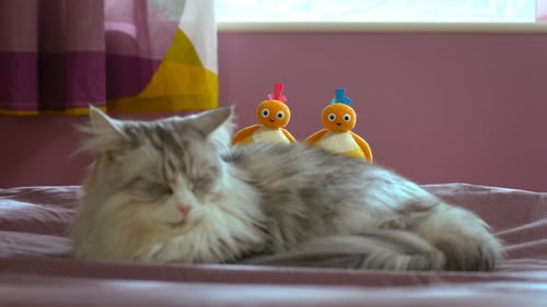 The Twirlywoos meet a soft and fluffy cat, and can't resist stroking its fur.