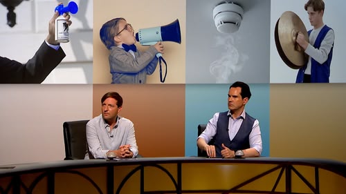 Sandi calls for quiet with Alan Davies, Jimmy Carr, Andrew Maxwell and Sara Pascoe. Adult humour.
