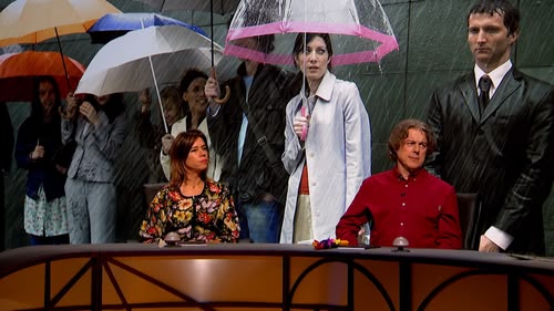 Sandi Toksvig hosts, with Alan Davies, Jo Brand, Phill Jupitus and Prue Leith. Adult humour.