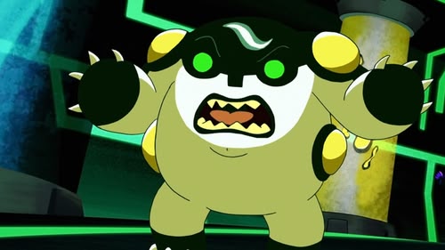 After the Junkbot shoots the Omnitrix and it begins glowing neon-blue, an imprisoned Vilgax explains it is now a gateway through which the Fulmini Empire will invade Earth.
