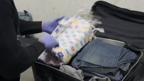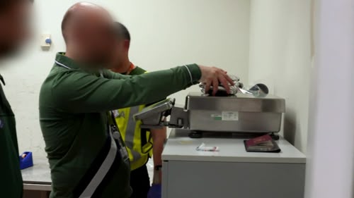 At Madrid Airport, the Civil Guard inspect a suitcase containing suspicious bottles. And, a huge bag of undeclared goods is discovered in Tarifa. S2, Ep16