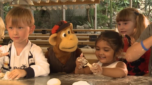 Milkshake Monkey joins some of his little friends for some floury fun, baking bread!