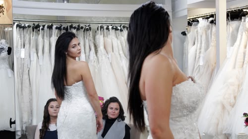 It can get tricky for a bride's first time shopping. Older bride Francis seeks an elegant, age-appropriate dress, and Donna wants a slim-fitting gown.(S02,E20)