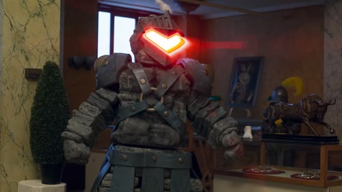 Oswald has to go undercover as a robot to enter a villain warehouse run by robots.