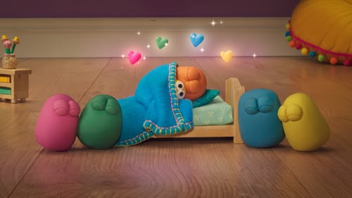 When the lights go out, Blue feels scared. The Very Small Creatures create gentle, glowing comforts so Blue can fall asleep feeling safe and happy. (S3, ep 10)