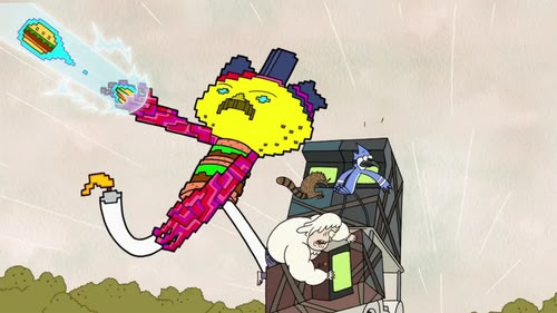 Mordecai, a blue jay, and Rigby, a raccoon, are groundskeepers at a park. But these best friends are lazy and don't let their jobs interfere with their ability to have fun. While Mordecai tries to be responsible and do a good job, he's frequently led astray by his immature pal, who is totally without fear or shame, and has no boundaries at all. The friends often end up having to pay for their irresponsible actions as they usually get into more trouble than they anticipated. Their slacking off at work causes much chagrin for their hot-tempered gumball machine boss, Benson.