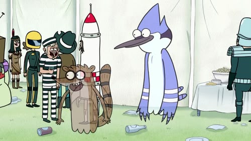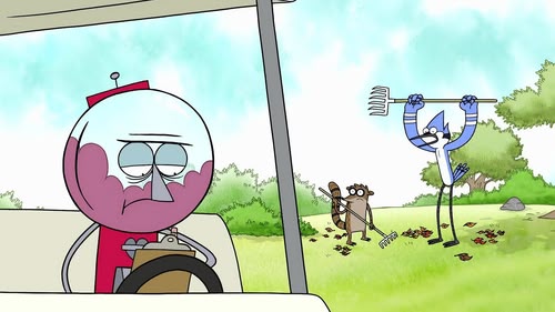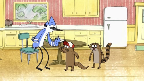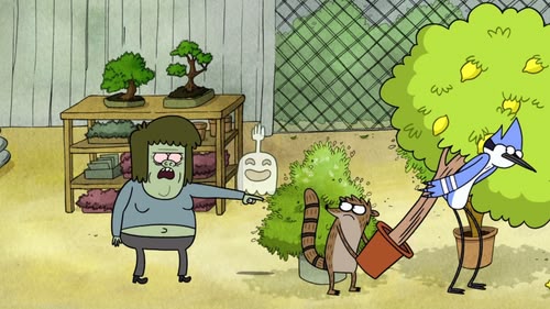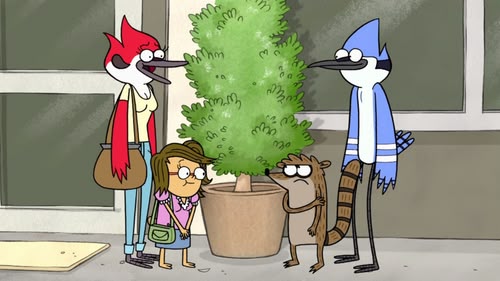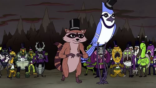 Mordecai, a blue jay, and Rigby, a raccoon, are groundskeepers at a park. But these best friends are lazy and don't let their jobs interfere with their ability to have fun. While Mordecai tries to be responsible and do a good job, he's frequently led astray by his immature pal, who is totally without fear or shame, and has no boundaries at all. The friends often end up having to pay for their irresponsible actions as they usually get into more trouble than they anticipated. Their slacking off at work causes much chagrin for their hot-tempered gumball machine boss, Benson.