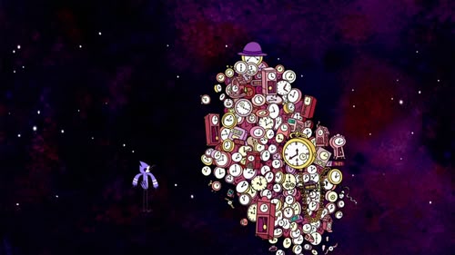 Mordecai and Rigby get in a fight over Margaret, and Mordecai sends them traveling through time by destroying all the clocks.