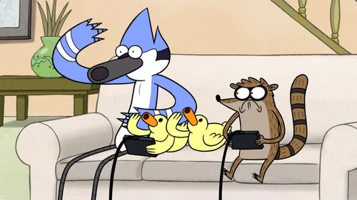 Mordecai and Rigby find four ducklings while cleaning the park fountain and, after imprinting on Rigby, attempt to pawn them off on other people.