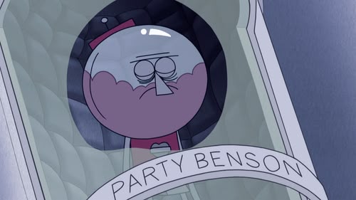 Mordecai and Rigby have to save Benson from an evil party.