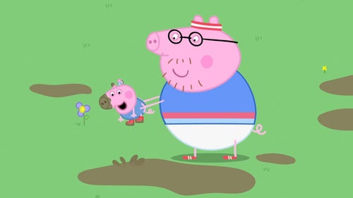 Daddy Pig thinks perhaps he should run the London Marathon to teach his children about determination! Daddy enlists Peppa and George to help with training - so off to the park they go. (S9 Ep24)