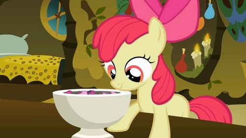 The Cutie Mark Crusaders create a love potion to make Miss Cheerilee and Big Macintosh fall in love. (S2, ep 17)
