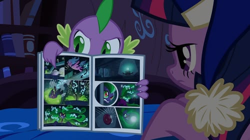Spike and the Mane 6 end up as superheroes in a comic book world. The only way to get back is to defeat the supervillain. (S4, ep 6)