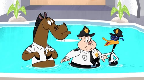 Daffy infiltrates the aquarium to get free food and it's up to aquarium worker Porky to get him out...