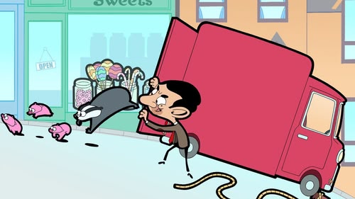 Mr Bean, badgered by a strange pink animal, warms to the creature when it shows its true colours.
