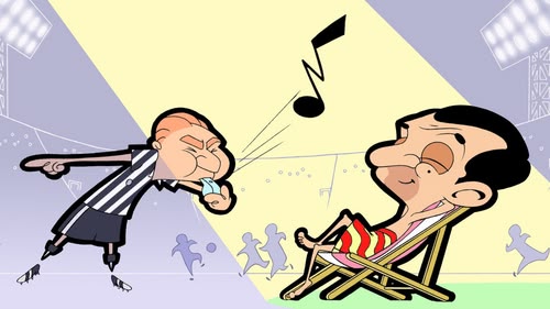 The nasty tennis player is big and angry and wants his ball back. The one Mr. Bean managed to throw on the roof of a house across the road.