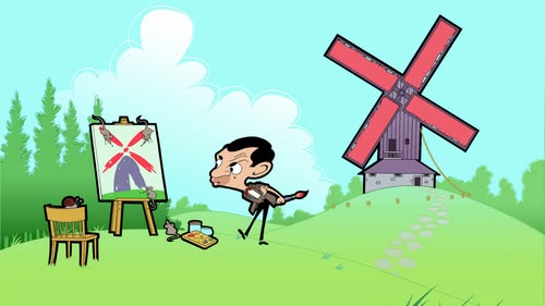 Mr Bean gets a real bug for painting. Then several bugs… and flies and slugs and mice.