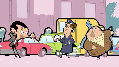 Mr Bean can't find a parking space. So he makes one of his own.