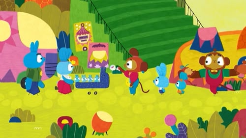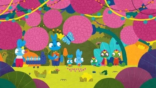 The Bunnies meet their chameleon friend Kara, and play hide-and-seek together. And thanks to Kara's colour-changing ability, she blends into the Jungle so the Bunnies can't see her!