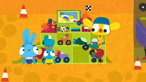 Bop and Boo are disappointed when their giraffe friend, Jeff, doesn't want to play with his brand-new toy race car because he doesn't want to get it dirty.