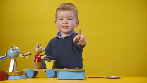 Episode 5. Explore a ball of wool and a drawing man drawing a trumpet. Book Boy makes a hula hoop.