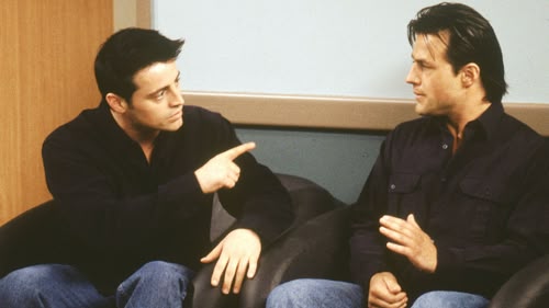 Chandler is upset when a men's magazine prints Ross's joke. However, both Chandler and Ross claim to have originated the joke. (S6, E12)