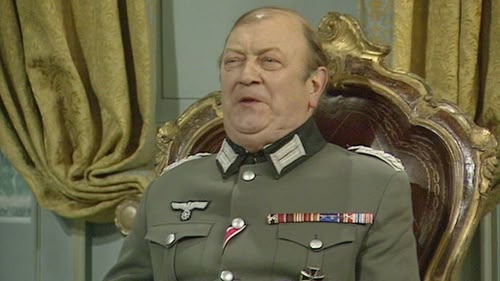 David Croft's wartime comedy gives the opportunity for hammy acting dressed in leather. Down in the dungeons of the chateau, Herr Flick awaits his victims.
