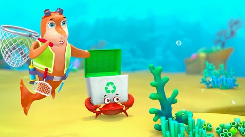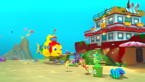 Five little fishes are swimming in the ocean, when they get swept away by some plastic debris! (S2, ep 5)