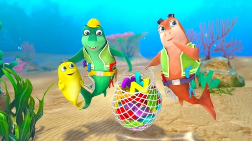 A B C Song: Finn and Shelly Shark practice the alphabet on their way to school. Letters float around in the reef, but they keep getting caught in the rubbish! (S2, ep 6)