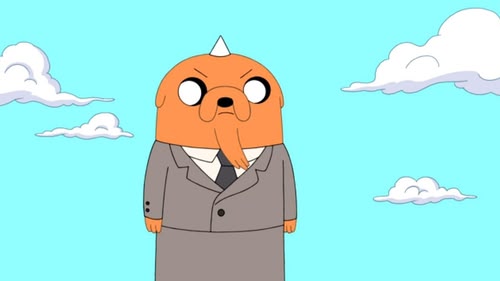 While Jake sleeps his tail stretches out to go work as a clown.