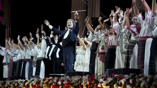 André Rieu performs his first ever concert in Bucharest and reveals the secrets behind his magical open air concerts, from the construction of the stage to singing with the audience.