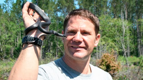 Steve wades into a swamp to try and catch a slippery amphibian.