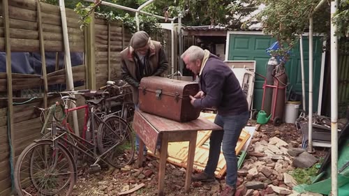 Simon and Henry head to Wantage scouring a shed for hidden gems to restore. They find items including a wooden workbench and a metal water tank.