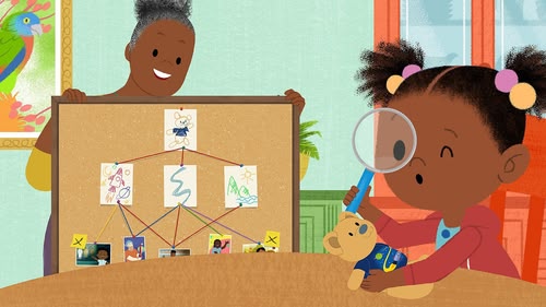 It's Time to Make a Family Tree. Great-Gran Gran shows an old family photo to JoJo & Gran Gran who make their family tree.