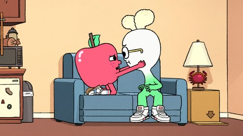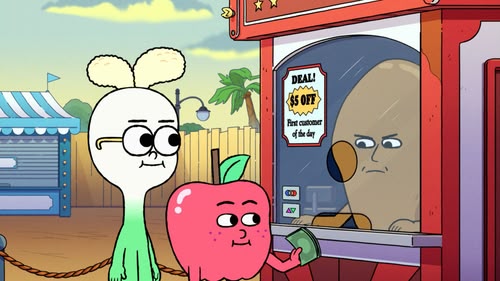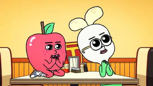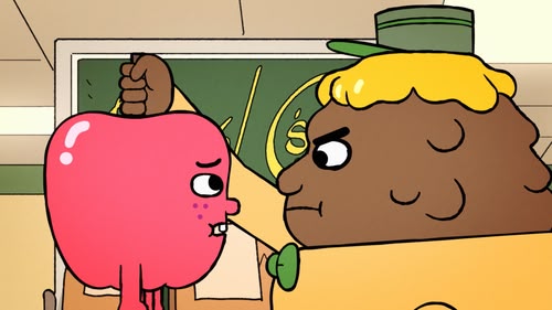 Apple is challenged to a fight by a grumpy Cheesesteak so he and Onion go on a quest to find the source of Cheesesteak's grumpiness.