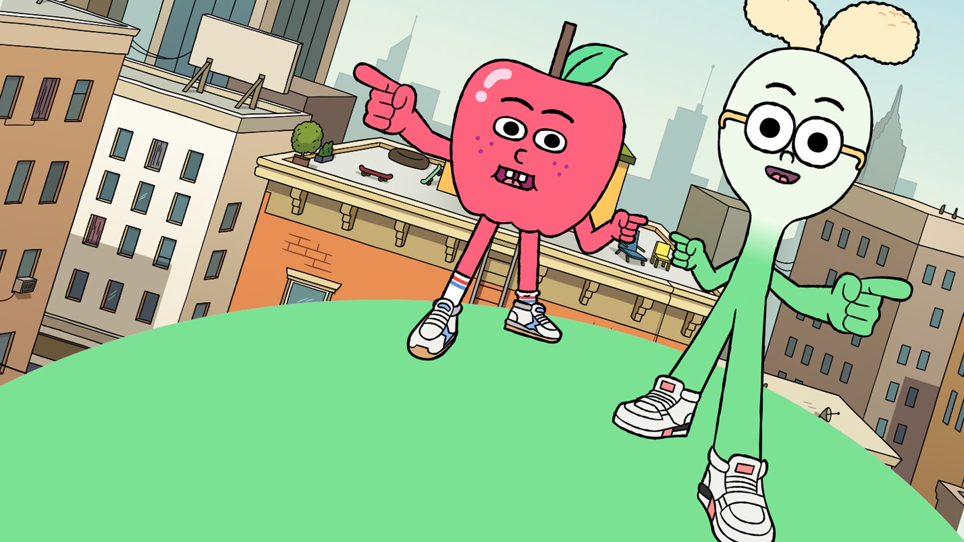 Apple and Onion both leave their homes and move to the city where they meet one another for the very first time.