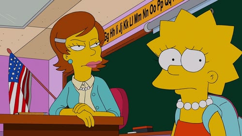 Flanders loses his cool when his laid-back parents start to prefer Homer's company to his own. Lisa is bullied by her new substitute teacher (Tina Fey). (S24 Ep15/22)