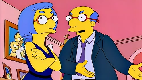 When Milhouse's parents split up, his mum gets together with an American Gladiator called Pyro, his dad self-produces an album and Milhouse goes a bit crazy. (S8 Ep6/25)